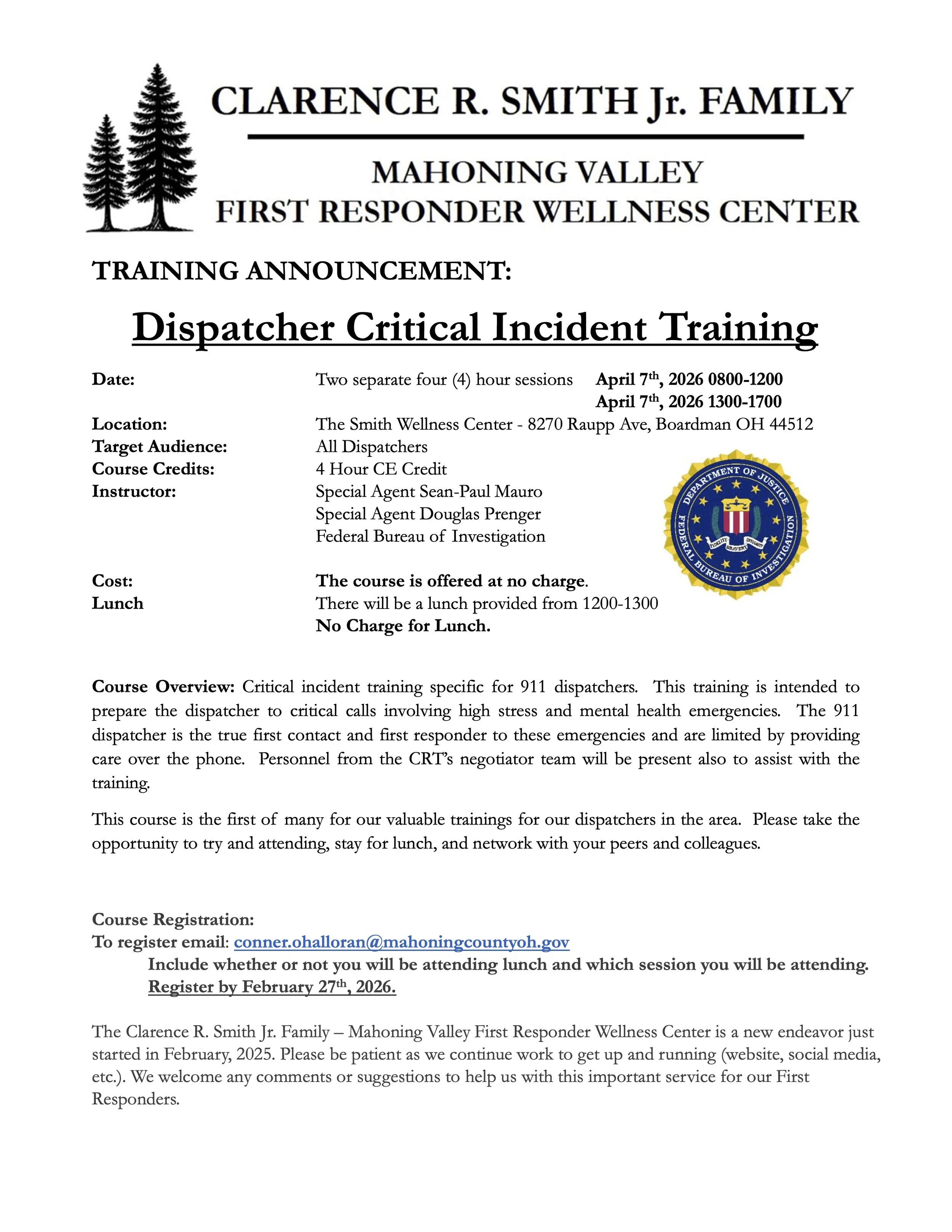Date: Two separate four (4) hour sessions: April 7th, 2026 0800-1200 and April 7th, 2026 1300-1700